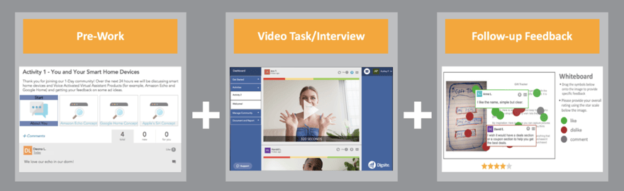While video is a primary tool for remote research, insight community platforms like Digsite can help you layer on even more capabilities to make remote research more effective than using video alone.